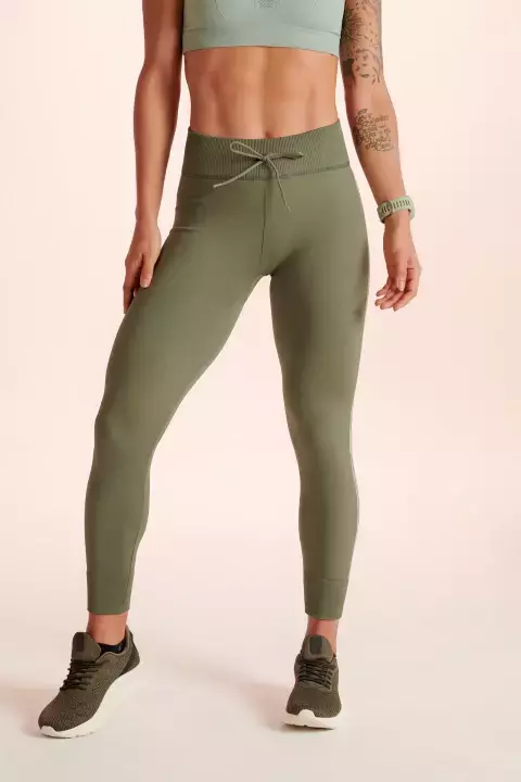 Calça legging sem costura ( tecnologia Seamless Dry) que proporciona secagem rápida do suor e maior respirabilidade. Cós largo e anatômico te deixa mais segura no exercício, além de modelar a silhueta. O cós ainda possui cordão. Nas laterais, detalhe de listras acompanham a calça.