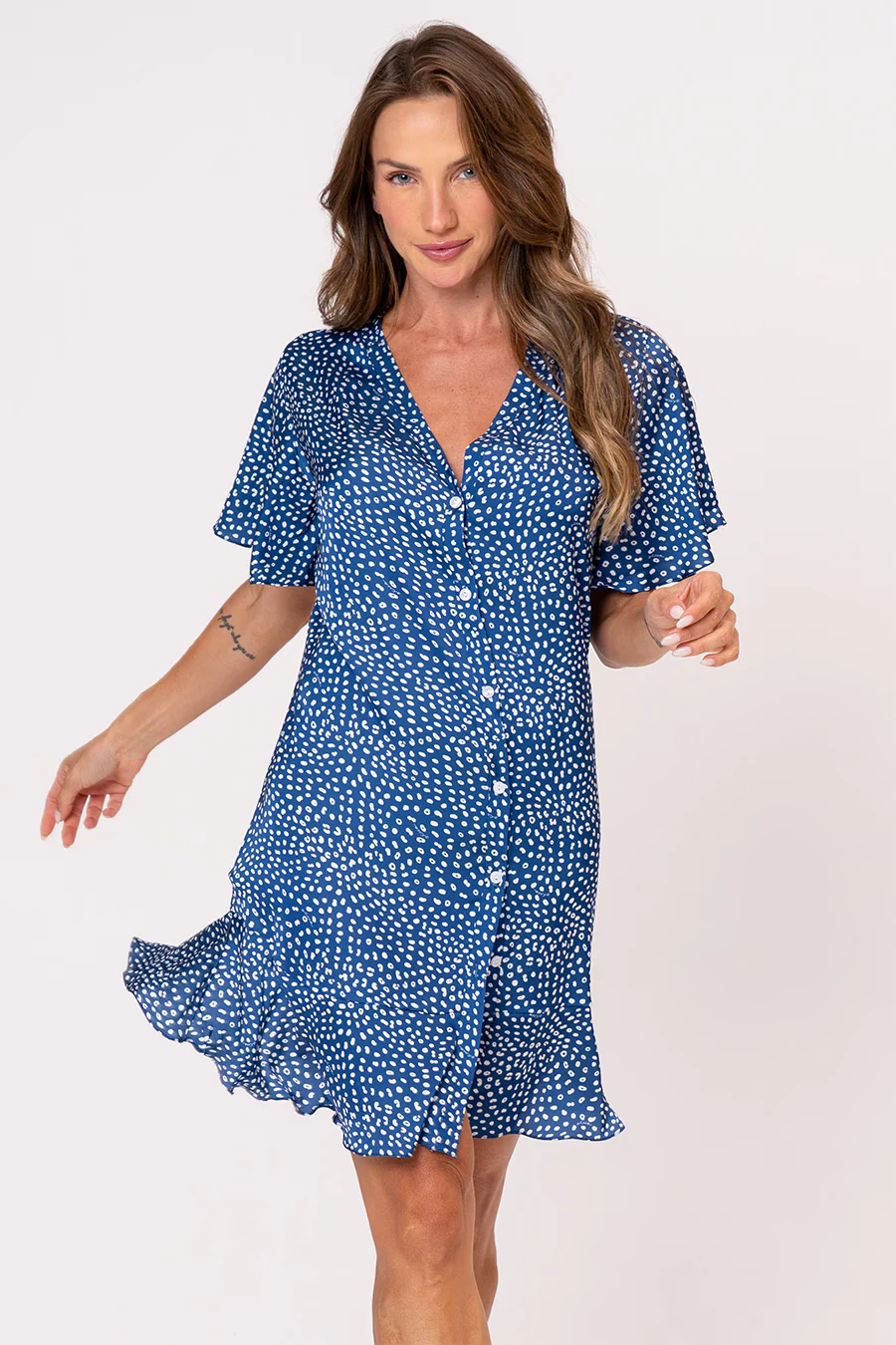 Confeccionada em tecido acetinado com toque de seda, a peça tem brilho elegante, textura macia e um visual que valoriza a silhueta de maneira fluida. A estampa da coleção Asas do Mar celebra elementos inspirados no oceano e no clima litorâneo do verão, traduzindo liberdade e leveza em cores e formas orgânicas.