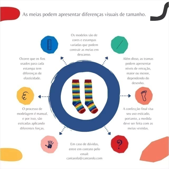 Ahhhhhh! Nossas meias são super coloridas e com muitas formas, desenhos, figuras e isso pode apresentar pequenas variações entre um modelo e outro no tamanho aparente, entretanto, todas as meias e leggings são produzidas para VESTIREM! Ou seja, se você escolheu com as dicas acima, não se preocupe que vai ficar PERFEITA!