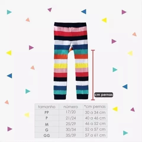 Ahhhhhh! Nossas meias são super coloridas e com muitas formas, desenhos, figuras e isso pode apresentar pequenas variações entre um modelo e outro no tamanho aparente, entretanto, todas as meias e leggings são produzidas para VESTIREM! Ou seja, se você escolheu com as dicas acima, não se preocupe que vai ficar PERFEITA!