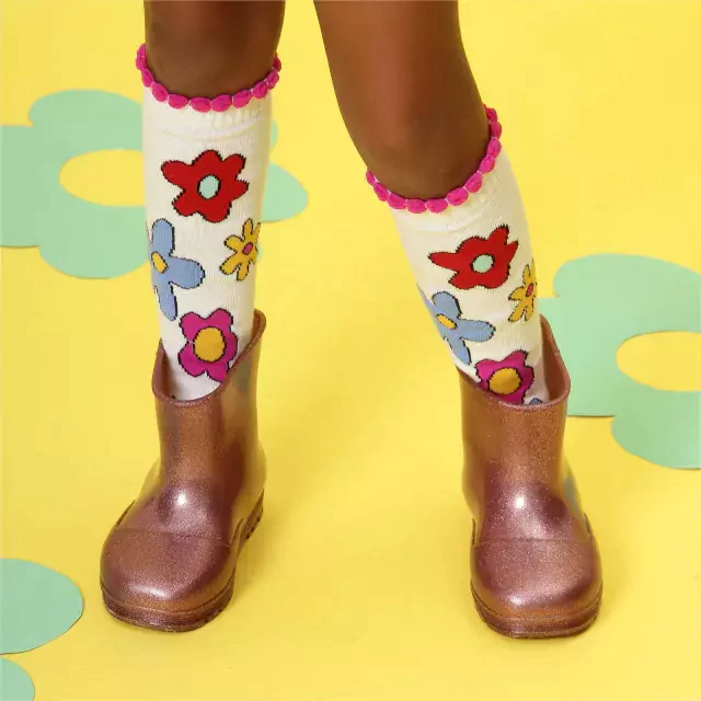 Meia Flores 3/4 (três quartos infantil) e Longa (adulto)