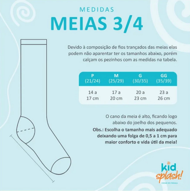 Altura do cano da meia é alto, ficando logo abaixo do joelho dos pequenos.
