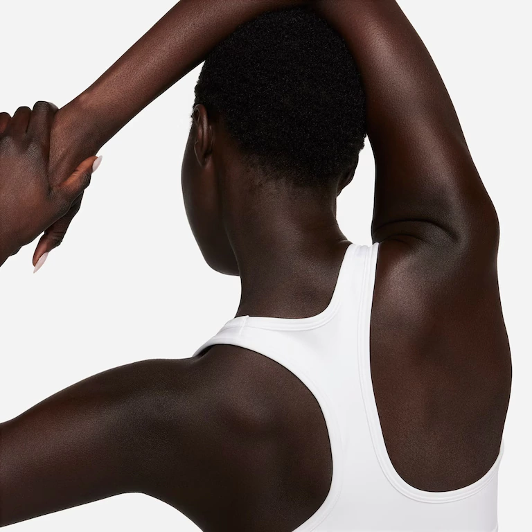 O Top Nike Swoosh Feminino foi desenvolvido para acompanhar seus movimentos com conforto e segurança. Com bojos costurados fixos, ele permanece no lugar mesmo nos treinos mais intensos, oferecendo suporte médio e modelagem estável sem dobrar ou se deslocar.