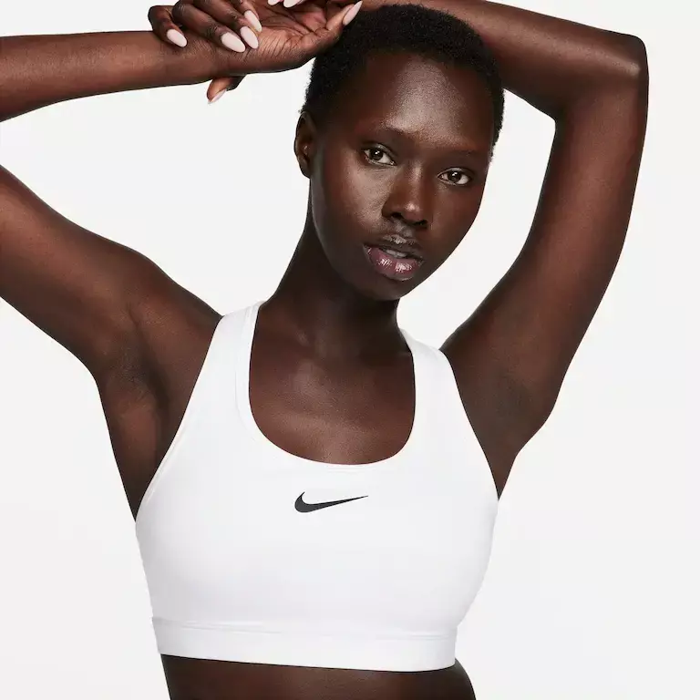 O Top Nike Swoosh Feminino foi desenvolvido para acompanhar seus movimentos com conforto e segurança. Com bojos costurados fixos, ele permanece no lugar mesmo nos treinos mais intensos, oferecendo suporte médio e modelagem estável sem dobrar ou se deslocar.
